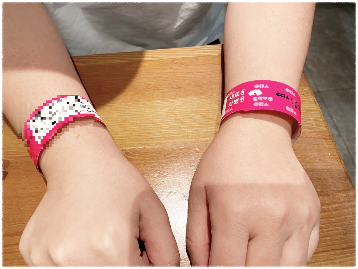 먼저 수술 상담실에 들렀는데 양 손목에 저와 배우자의 생년월일, 등록번호, 담당교수명, 성별, 나이가 적힌 팔찌를 채워주셨어요.