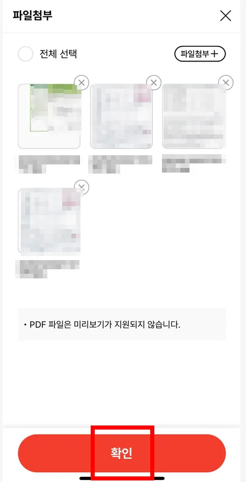 저는 진료비 영수증, 약국 영수증, 진료비 세부내역서를 첨부하였고 '확인'을 눌러줍니다.