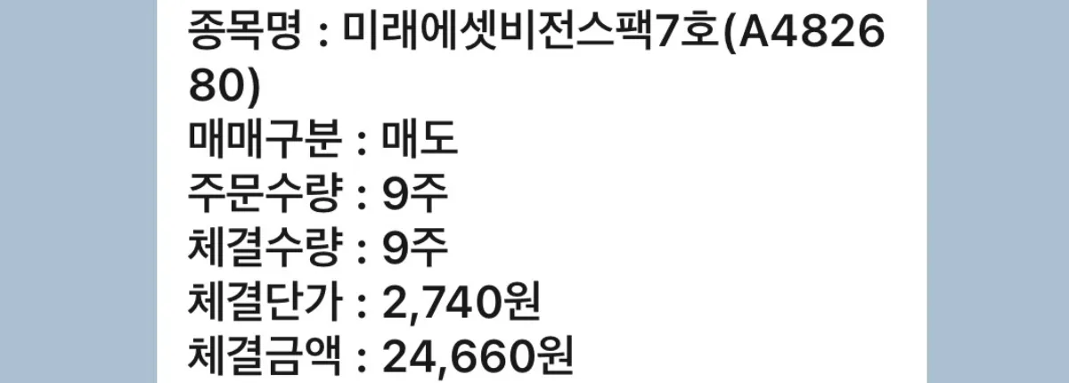 오늘은 미래에셋비전스펙 7호 상장일입니다. 저는 균등으로 신청을 했는데요. 공모주린이인 저는 상장일인 오늘 매도를 하려고 해요. 시초가 이후 더 오를 수도 있지만 시초가 매도로 진행을 해보았어요. 시초가 매도는 상장 당일 8시 30분 ~ 9시 사이에 가능합니다.
